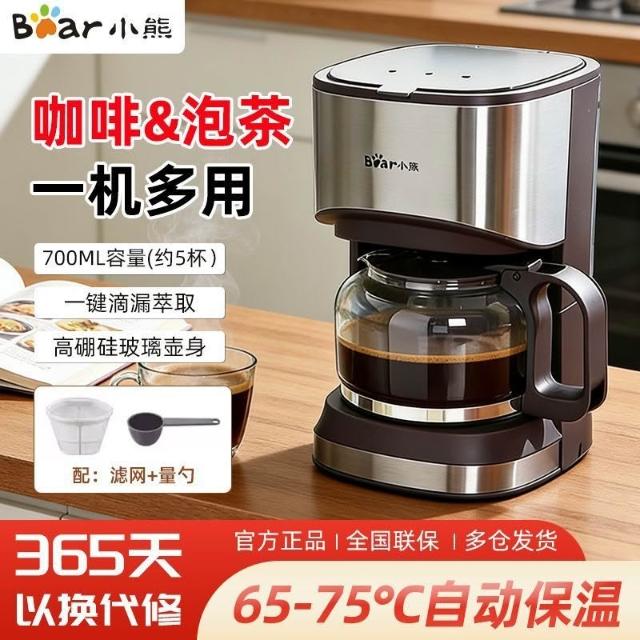 茂源優選【小熊】咖啡機家用全自動便攜咖啡豆小型美式滴漏式咖啡壺迷你煮茶壺