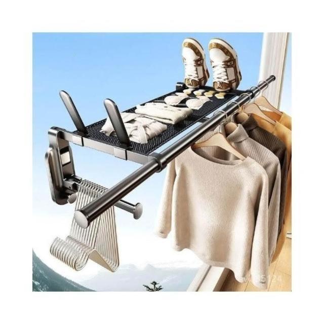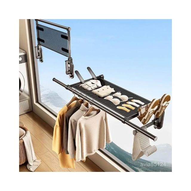 天地魚吸盤隱形折疊晾衣架室內家用免打孔掛衣架陽臺伸縮晾衣神器掛衣架 晾衣架 掛壁式晾衣架 陽臺晾衣架 嗮衣架