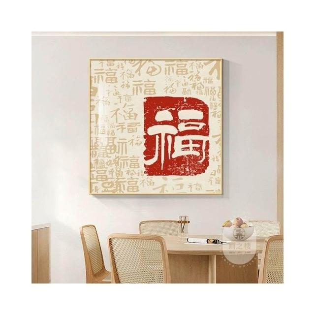 新品價 裝飾畫 挂畫 百福圖正方形裝飾畫新中式福字餐廳客廳玄關掛畫寓意好背景墻壁畫