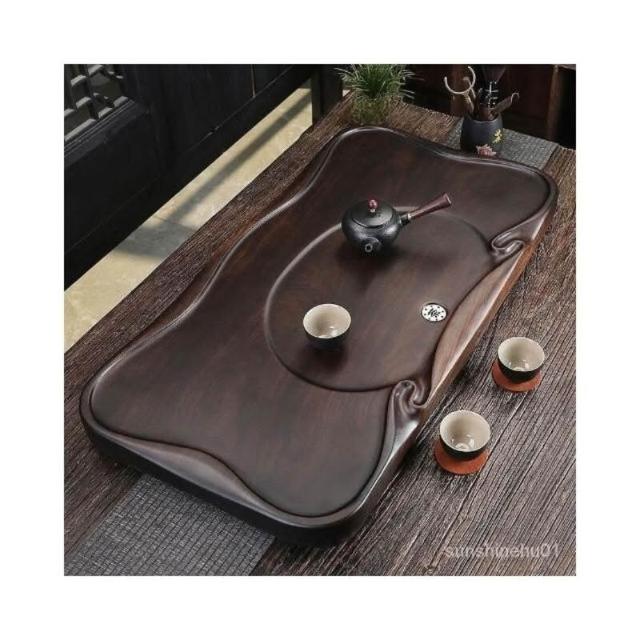 /免運 黑檀木茶盤 茶盤 木製茶盤 茶託 茶臺 泡茶盤 實木整塊原木傢用託盤輕奢現代簡約客廳排水式茶海茶臺