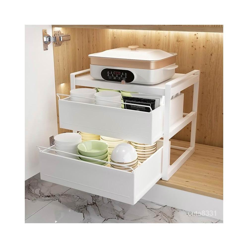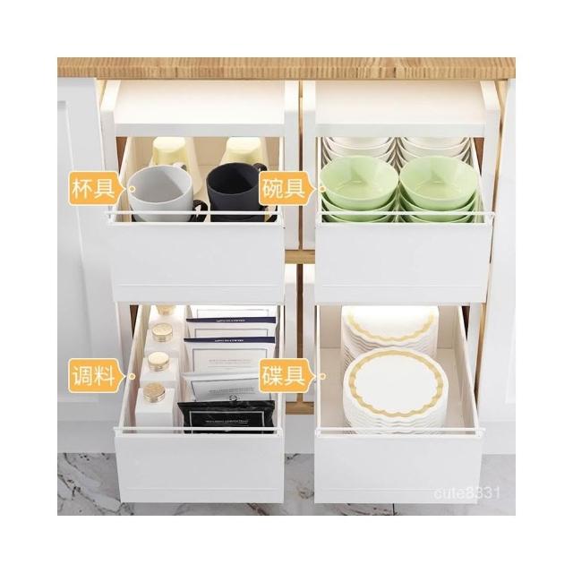 {特賣 免運}廚房櫥櫃拉籃抽屜式隔闆分層架滑軌調味碗盤抽拉收納盒碗碟置物架