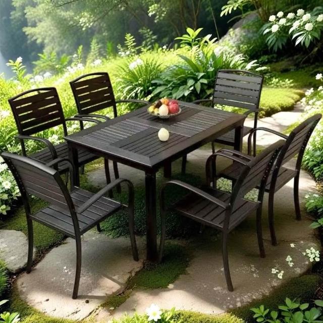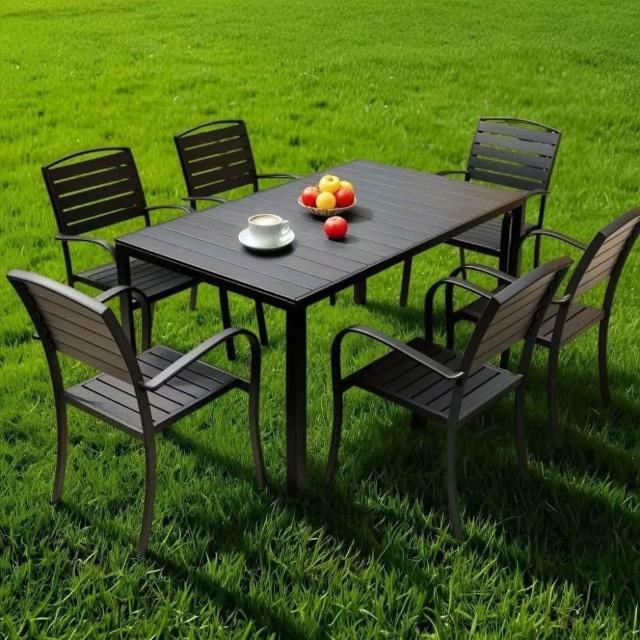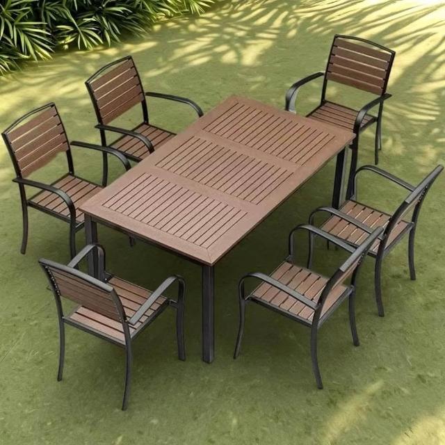 塑木戶外桌椅組 陞級鋁閤金框架 戶外桌椅 塑木桌椅 庭院桌椅 花園桌椅 休閒桌椅 餐桌椅 陽臺桌椅 露天桌椅