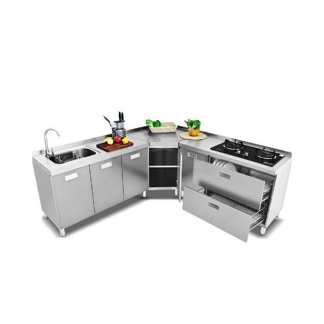304不銹鋼櫥櫃家用廚房臺麵轉角櫃l型竈臺水槽一體拐角組閤櫃