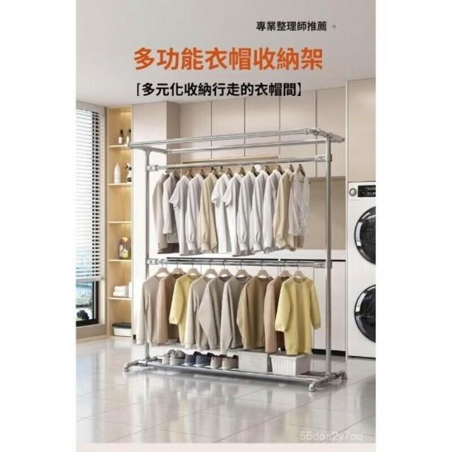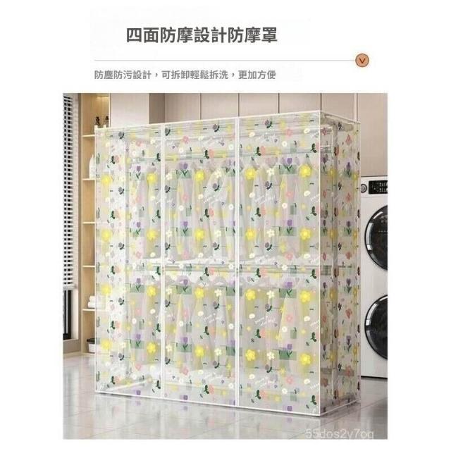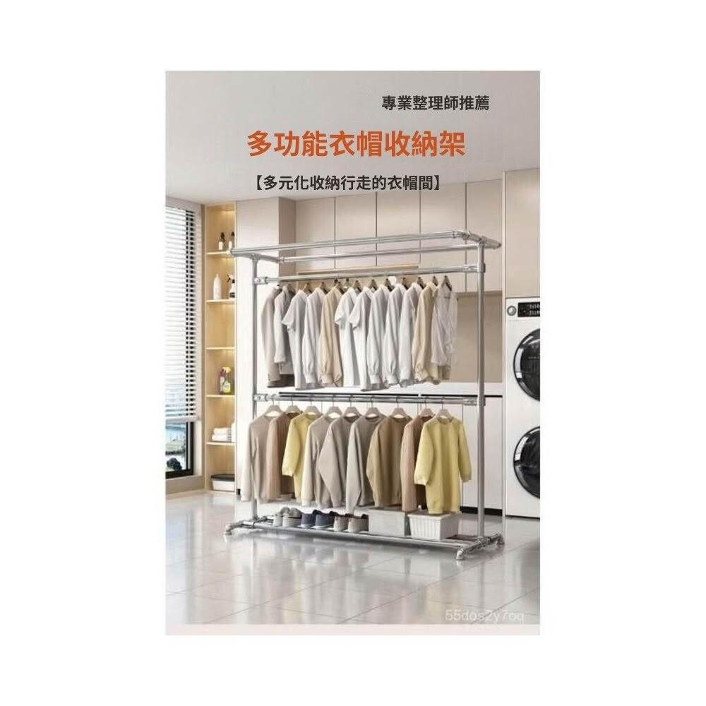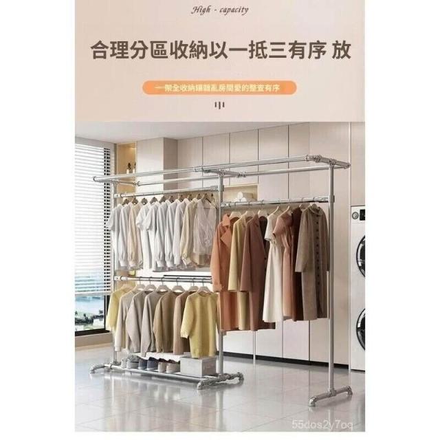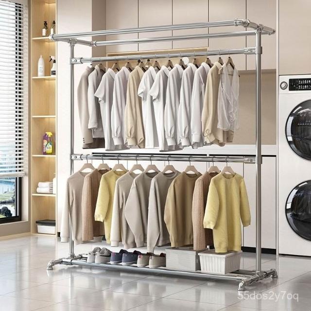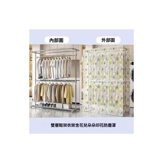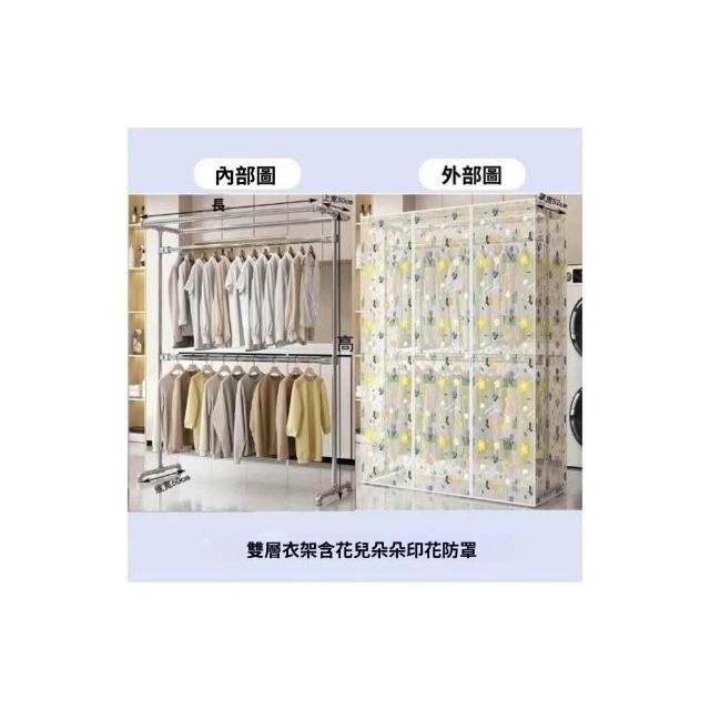 鐵藝雙層落地衣架家用配防塵罩鋼管貨架可拆卸衣帽間簡易衣櫃架子