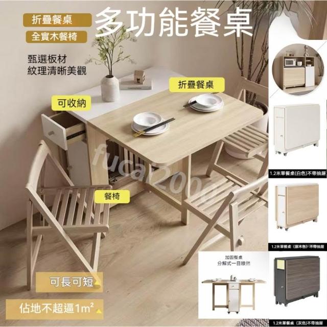 可摺疊收納實木餐桌椅組合 折疊桌 折疊餐桌 折疊桌椅 折疊收納桌子 可移動餐桌椅 實木餐桌 餐桌椅