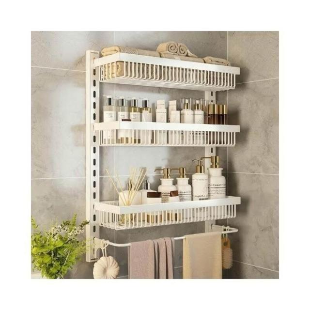 免打孔浴室置物架 收納架 衛生間置物架 多層可調節毛巾架 毛巾架 浴室置物架 無痕免打孔 置物掛架 雙層可折疊置物架