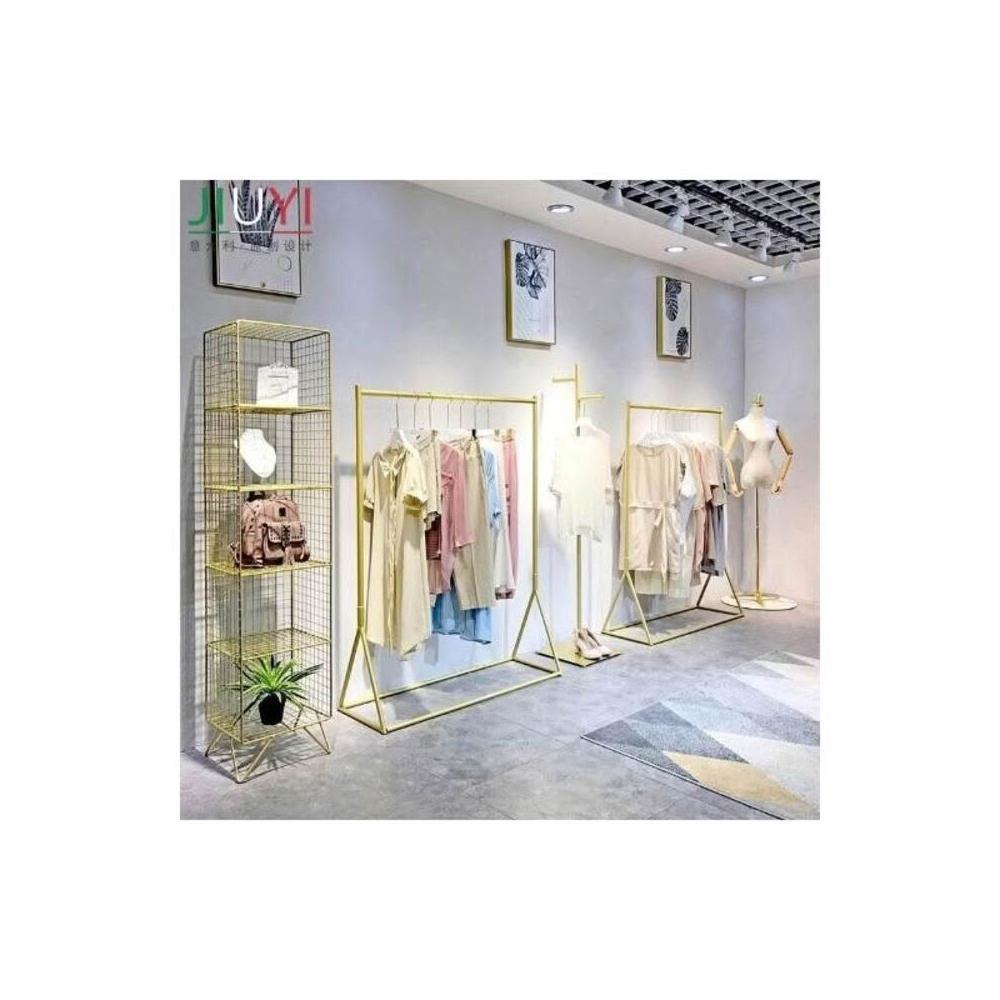 鐵藝落地晾衣架 服裝店展示架落地式金色衣服陳列衣架網紅輕奢掛衣架女裝店貨架