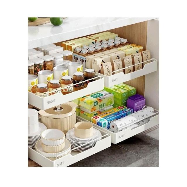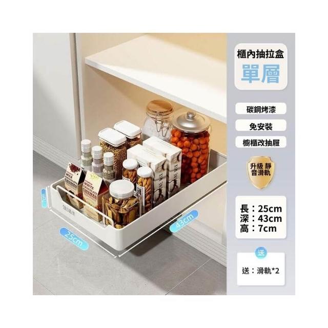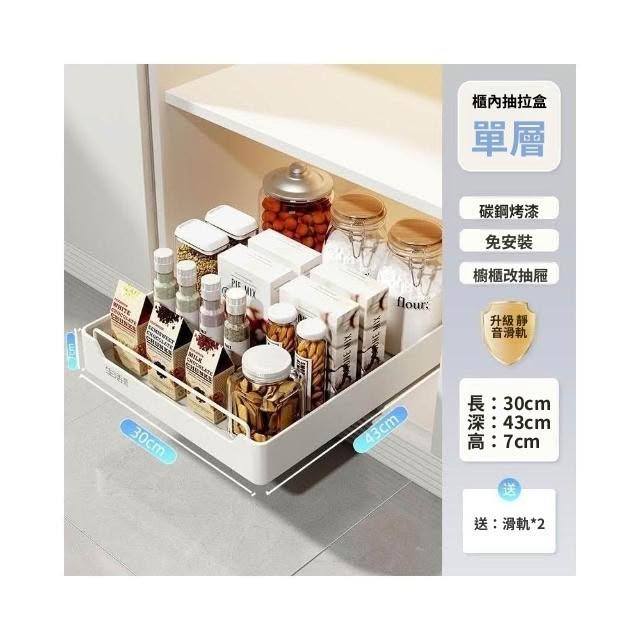 抽拉式收納盒 滑軌拉籃 櫥櫃內抽屜拉籃 深櫃收納抽屜 抽取式收納盒 櫥櫃拉籃帶滑軌 免安裝免打孔 抽拉式抽屜