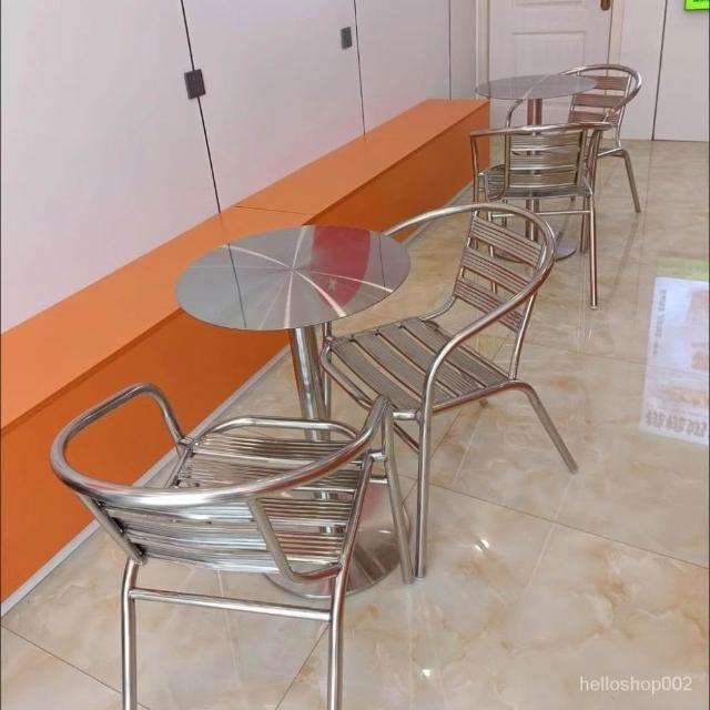 廠傢直銷 熱銷 不銹鋼圓形奶茶桌咖啡店網紅桌椅組閤簡約工業風傢用方桌戶外餐桌
