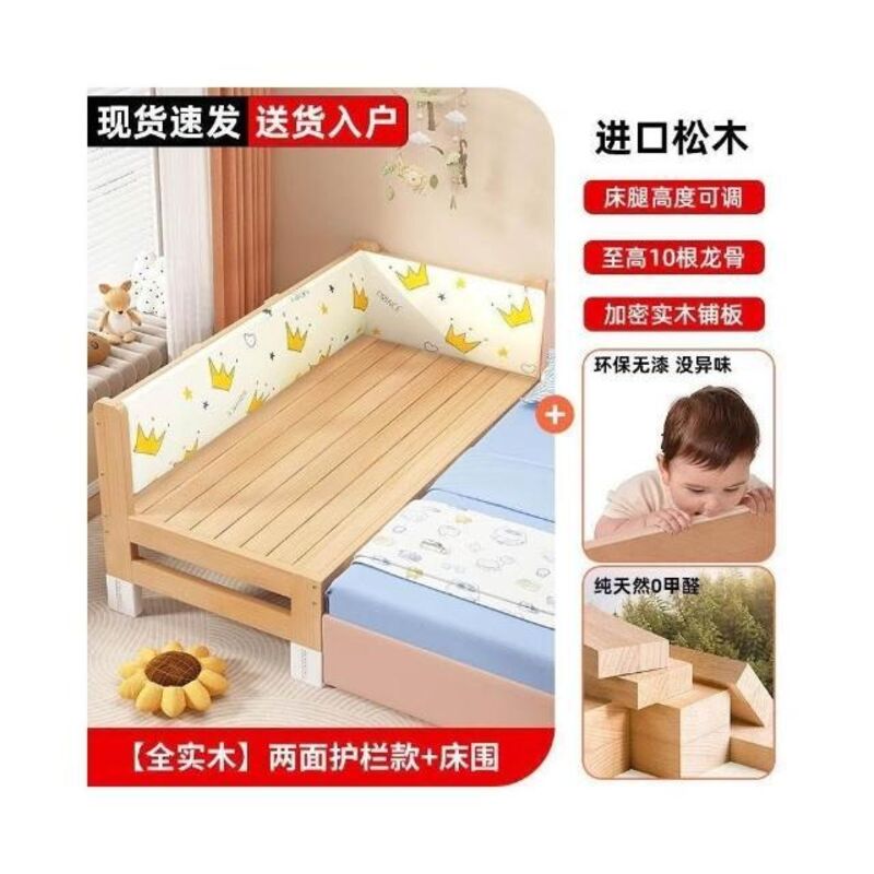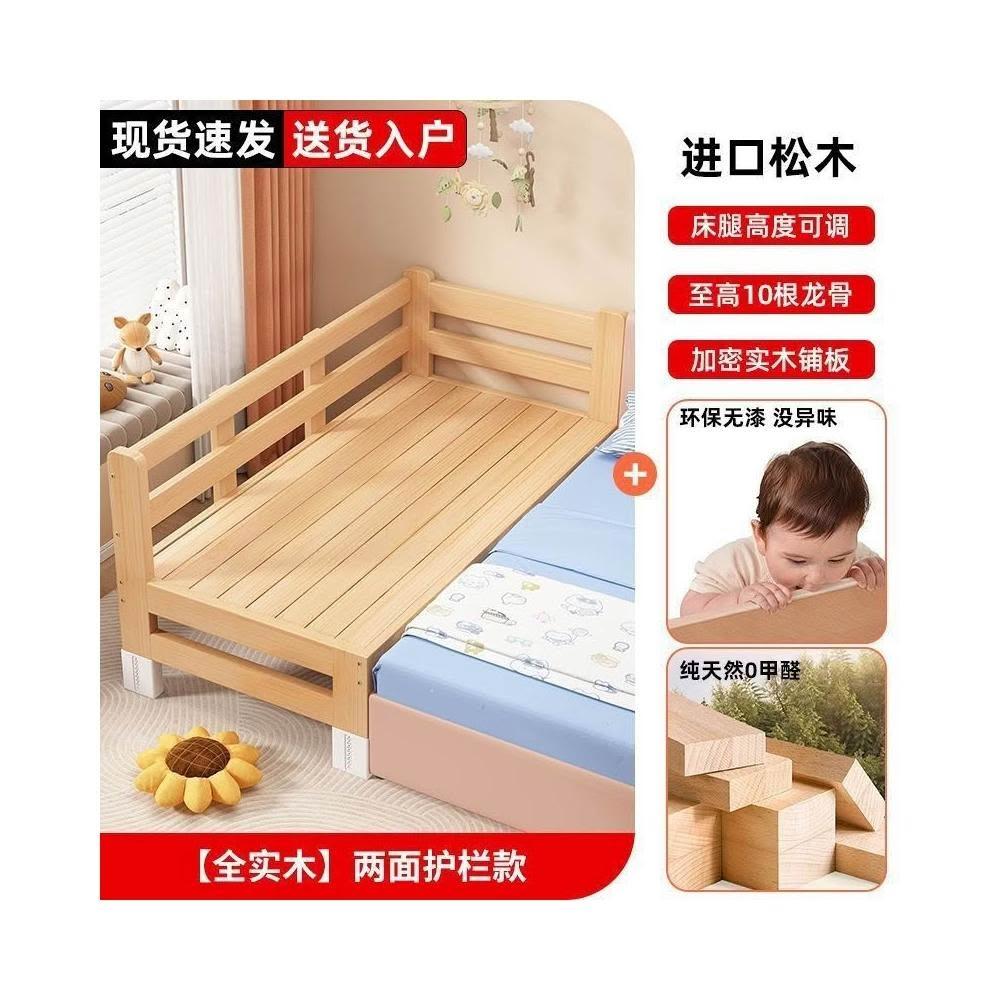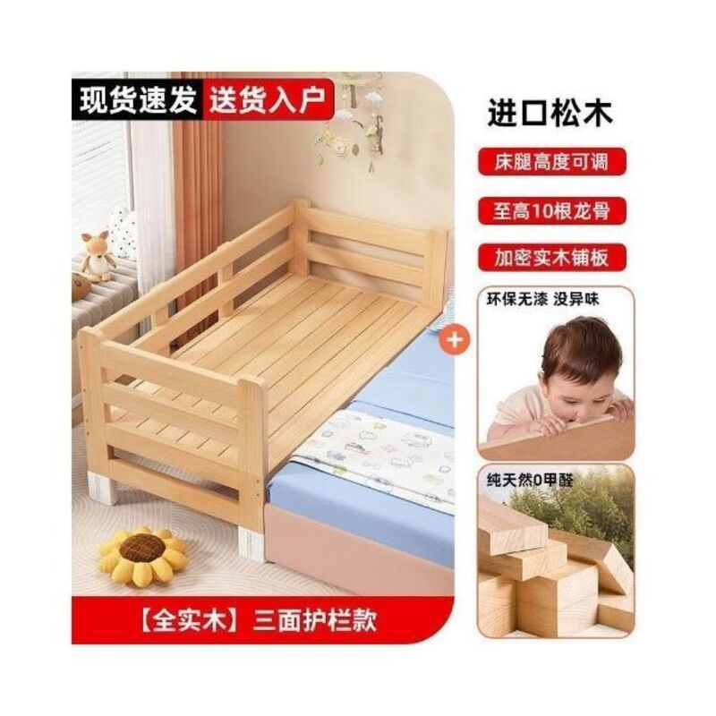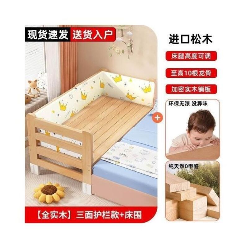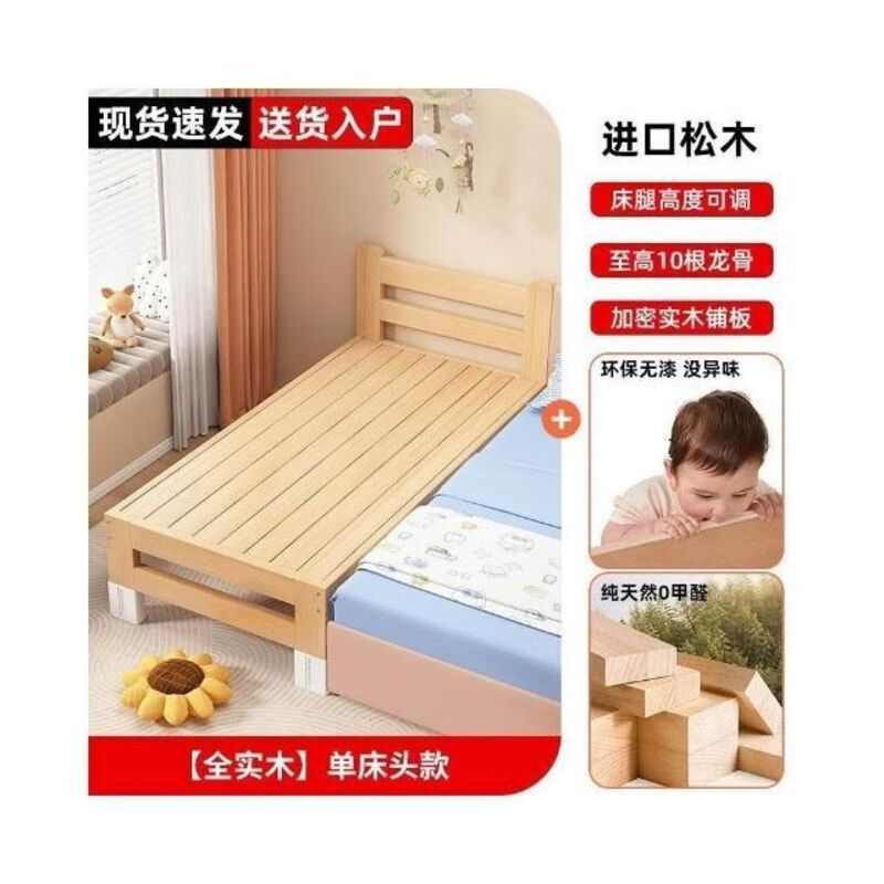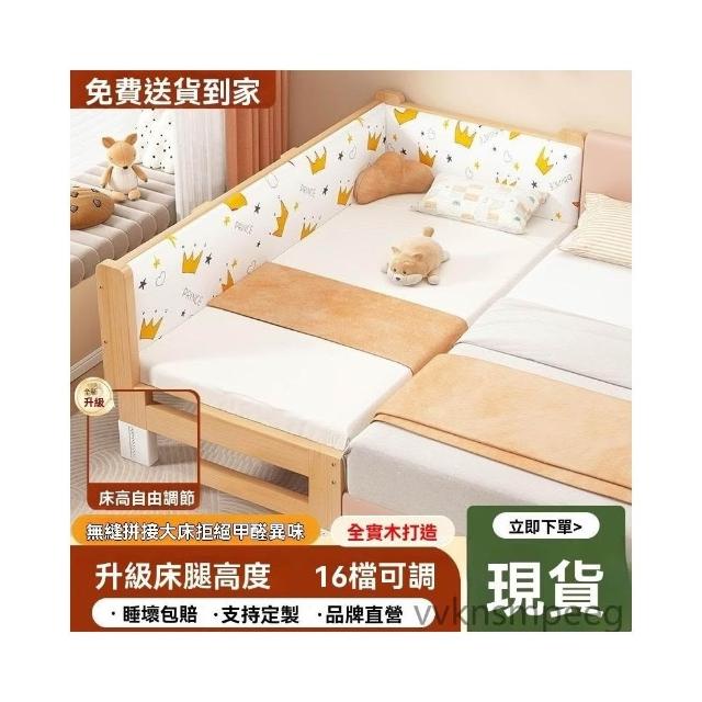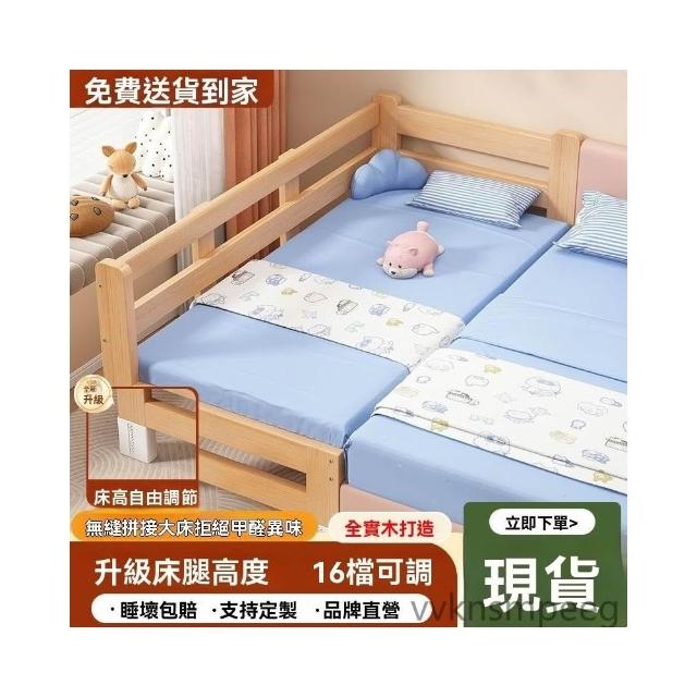 高度免費訂製 環保櫸樹實木 免運費 實木拼接床櫸樹兒童床加寬拼接大床小孩床邊床拼接床可定製