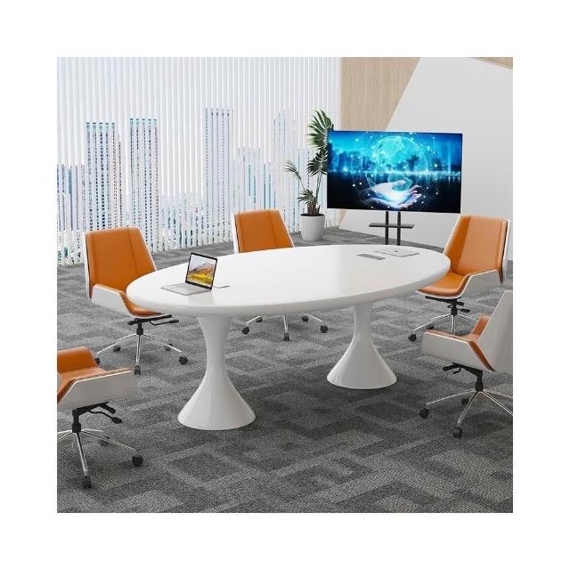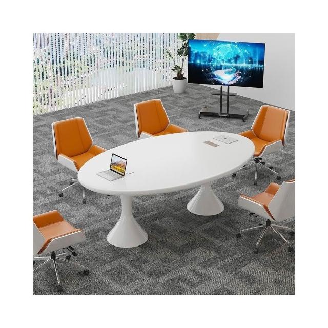 白色會議桌 烤漆橢圓桌 簡約現代小型輕奢北歐洽談 桌椅 組合培訓桌