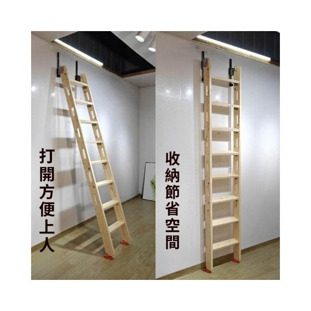 家用實木梯子貼墻梯 翻摺疊伸縮梯 伸拉隱形收納垂直實木樓梯 loft閣樓平台家用整體 閣樓平台家用整體梯