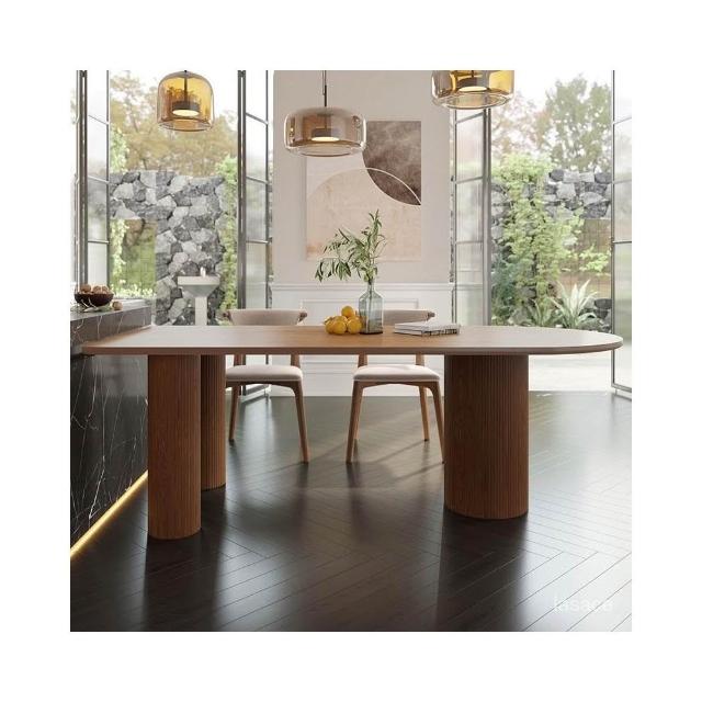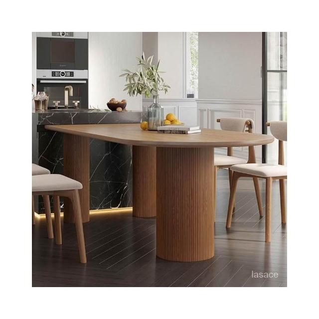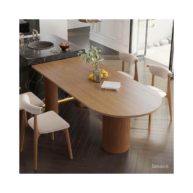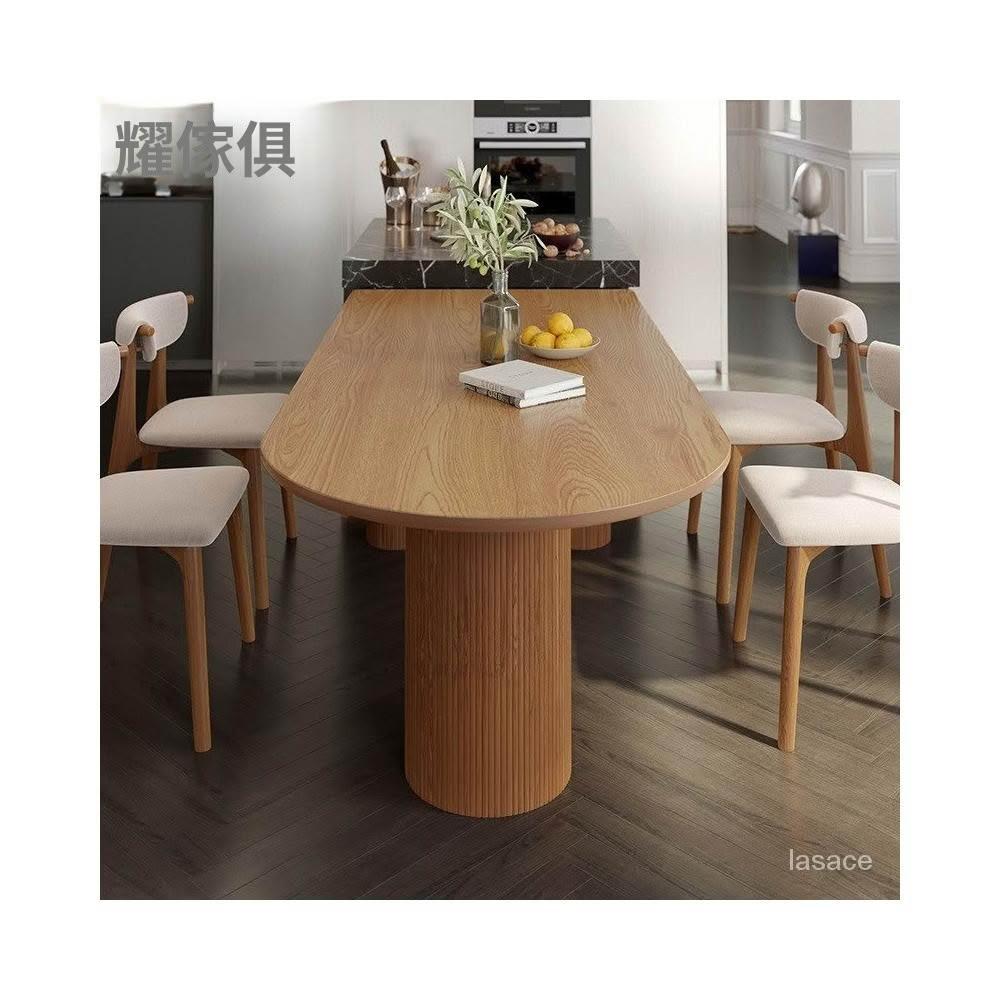 廠傢直銷特惠 日式侘寂風白蠟木中島臺一體實木餐桌橢圓形小戶型廚房吧臺半圓桌