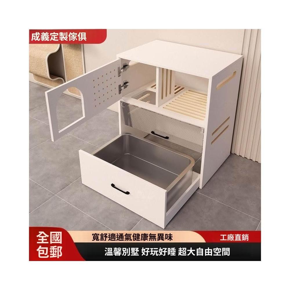✨ 新款下殺 🔥實木貓砂盆柜子 一體隱藏櫃 雙層貓砂櫃 防帶砂貓廁所櫃 封閉式貓櫃 貓屋 貓舍 帶廁所貓櫃