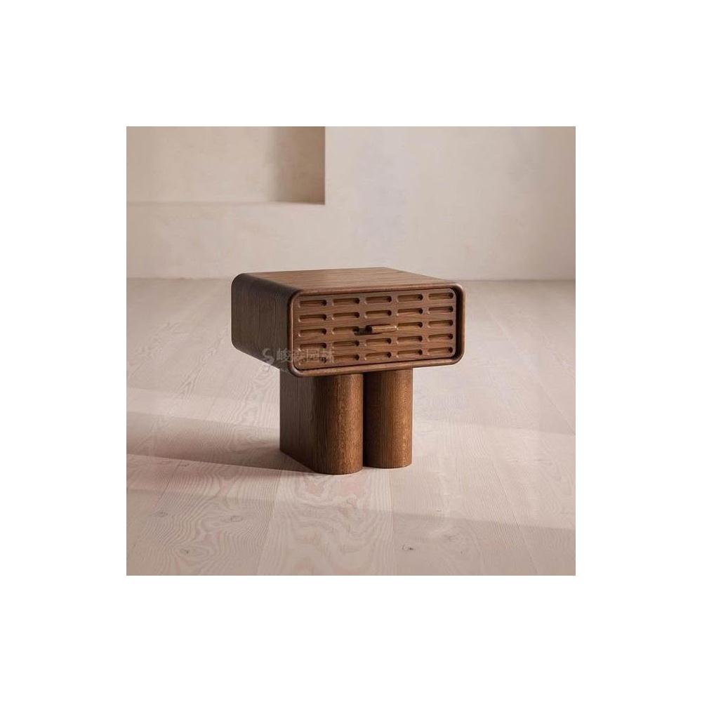 中古床头柜 法式复古实木胡桃木櫃子 小型设计师床边柜边柜创意卧室