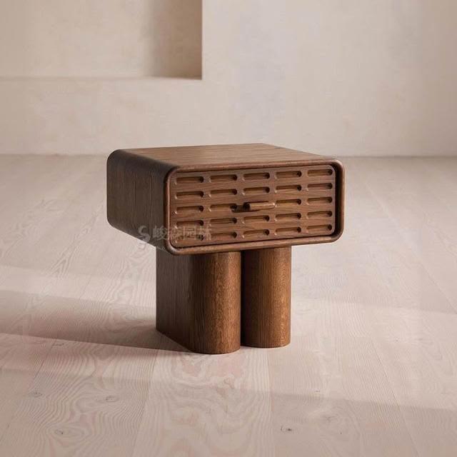 中古床头柜 法式复古实木胡桃木櫃子 小型设计师床边柜边柜创意卧室