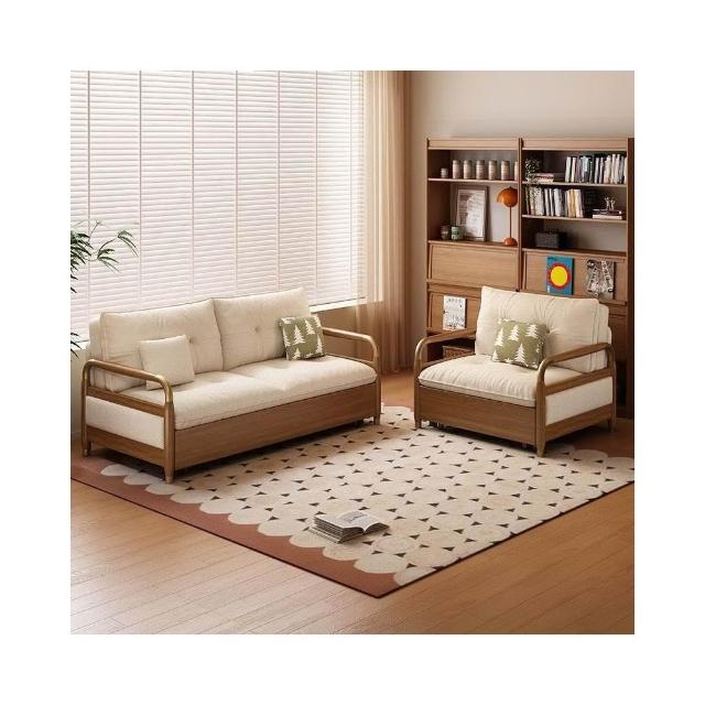 小銀子實木沙發牀一體兩用多功能中式小戶型客廳摺疊書房單人伸縮
