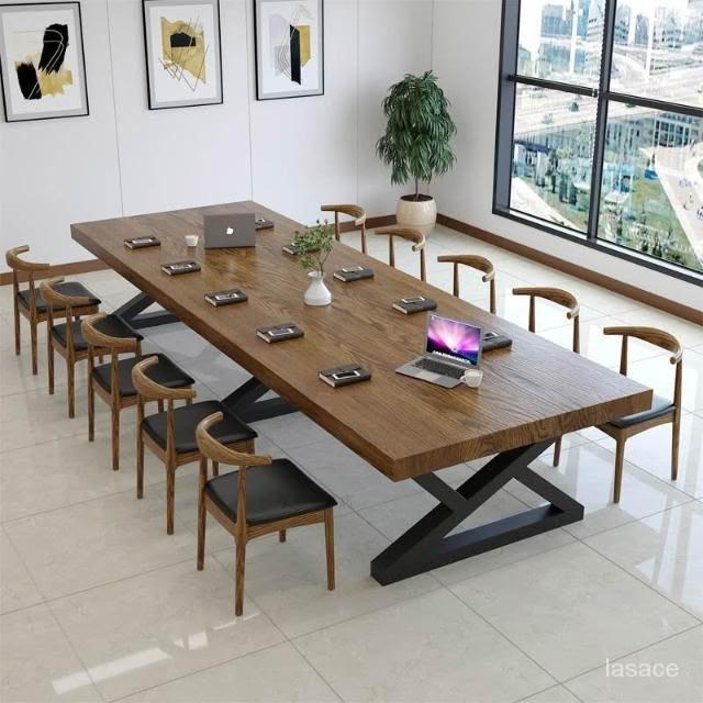 廠家直銷優選/特惠 實木會議桌長桌簡約現代辦公培訓桌椅組合北歐工業風大型長條桌子