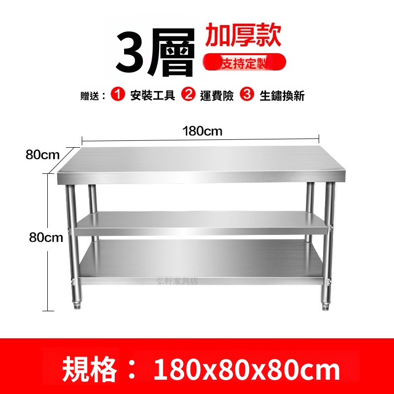 廠傢直銷特惠/優選 304加厚不銹鋼工作臺桌子三兩層打荷飯店商用廚房專用切菜操作臺