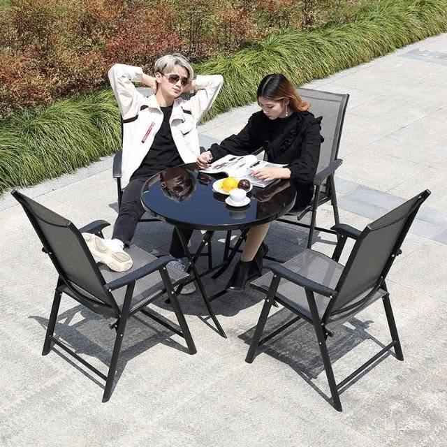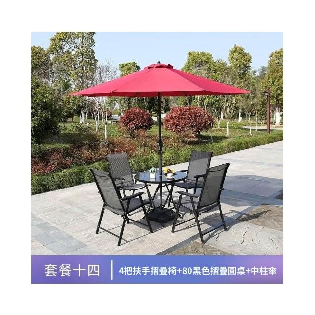 新品上架 限時折扣 戶外桌椅傘組閤折疊庭院露天陽臺室外便攜式鐵藝套裝花園休閒桌椅