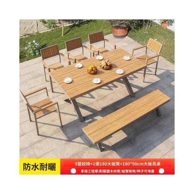 新品上架 限時折扣 戶外塑木桌椅庭院別墅花園露天現代簡約桌椅防腐防曬休閒實木桌椅