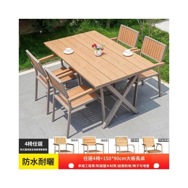 新品上架 限時折扣 戶外塑木桌椅庭院別墅花園露天現代簡約桌椅防腐防曬休閒實木桌椅