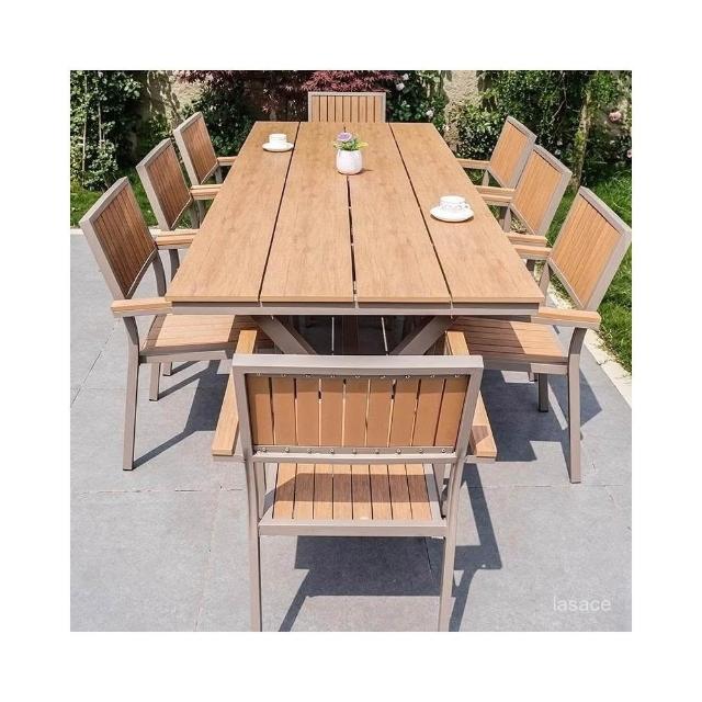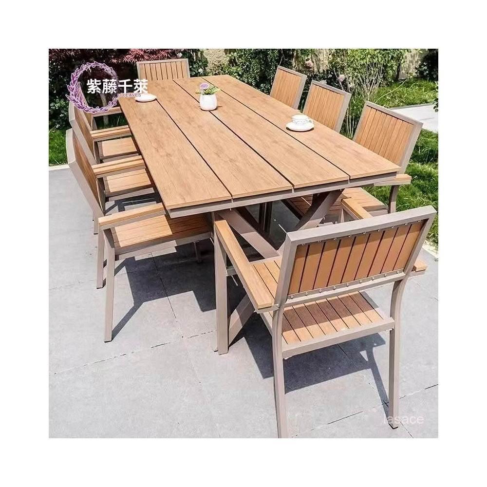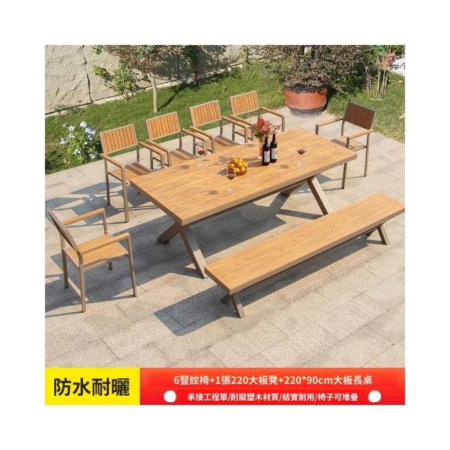 新品上架 限時折扣 戶外塑木桌椅庭院別墅花園露天現代簡約桌椅防腐防曬休閒實木桌椅