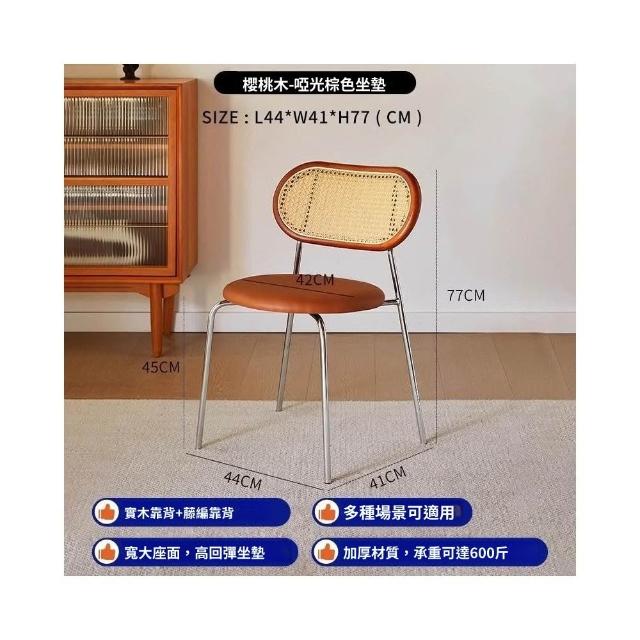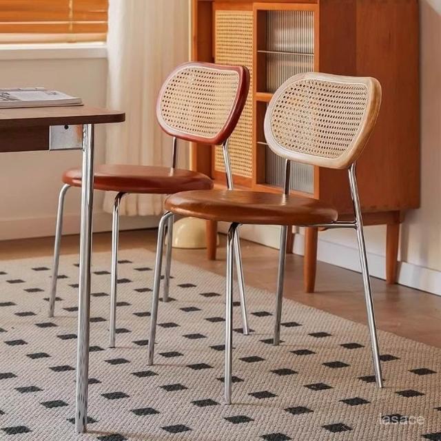 北歐藤編家用靠背椅原木餐椅中古侘寂風實木復古奶油法式餐桌椅子