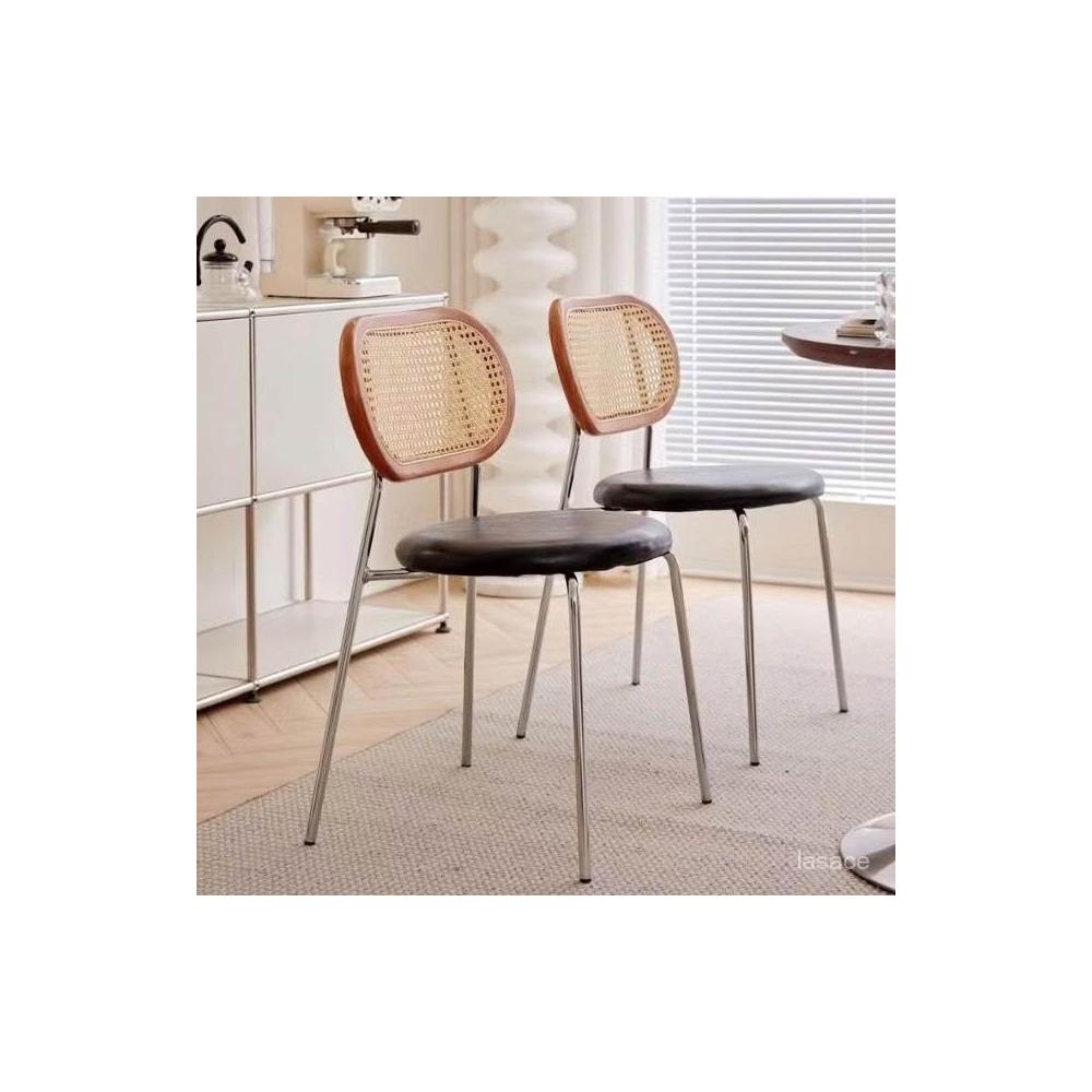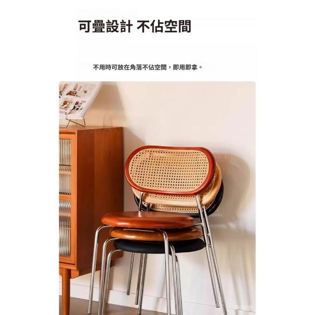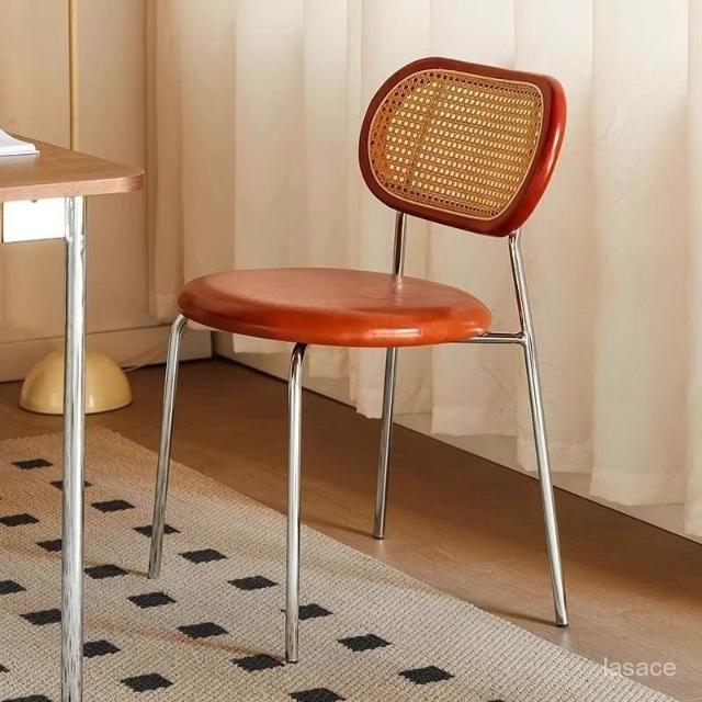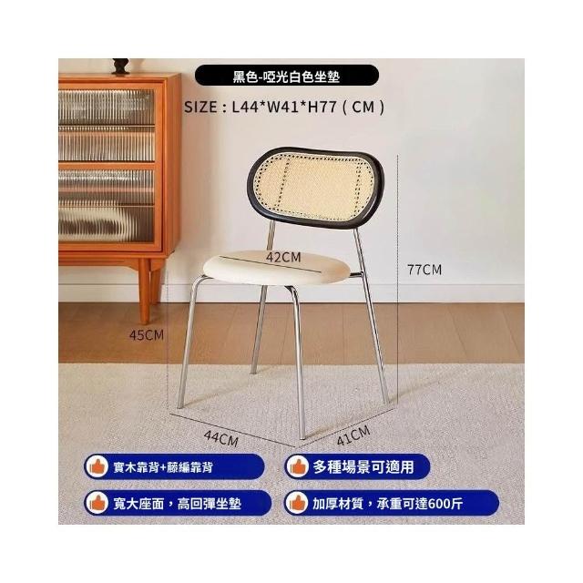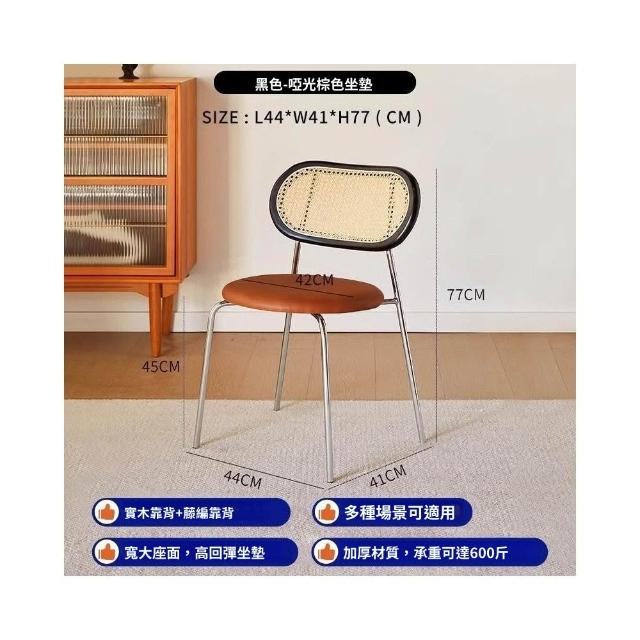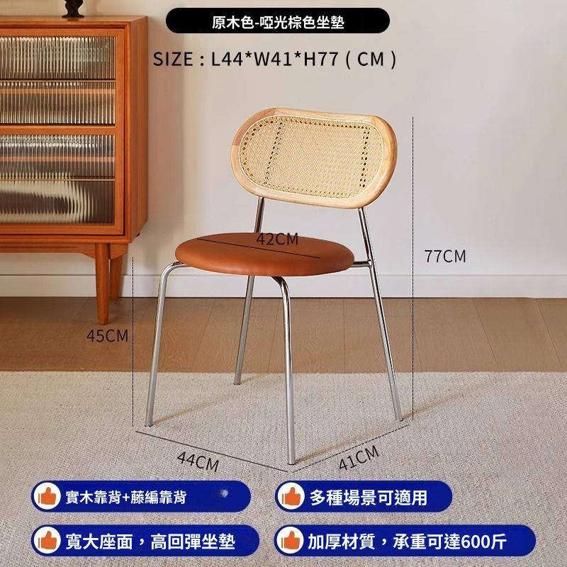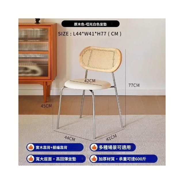 北歐藤編家用靠背椅原木餐椅中古侘寂風實木復古奶油法式餐桌椅子