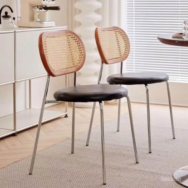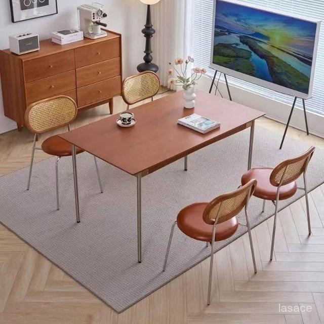北歐藤編家用靠背椅原木餐椅中古侘寂風實木復古奶油法式餐桌椅子
