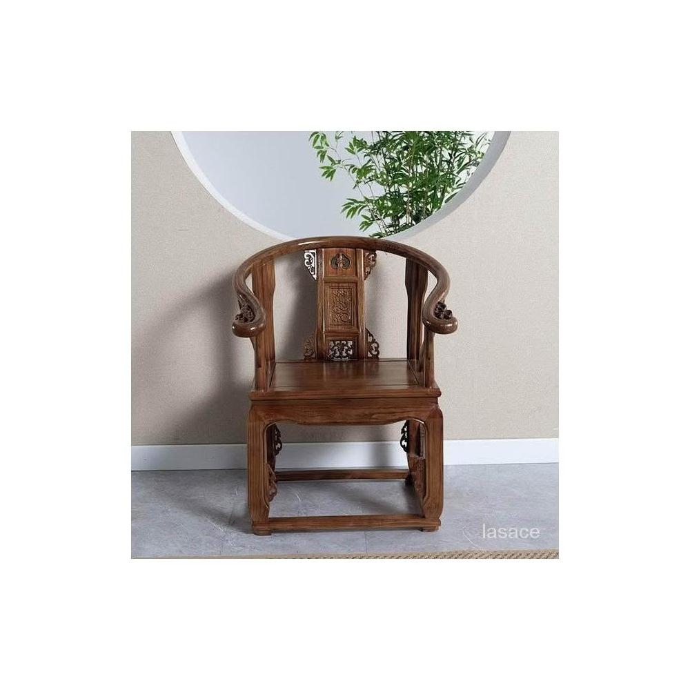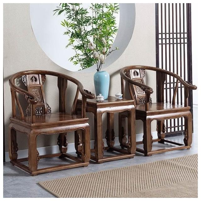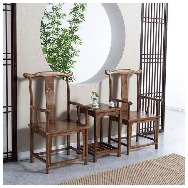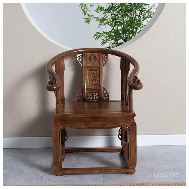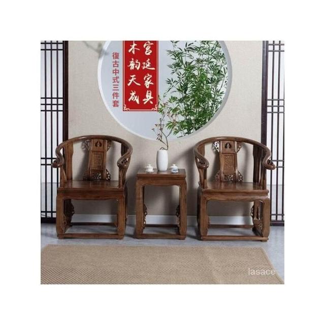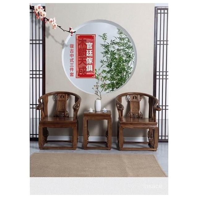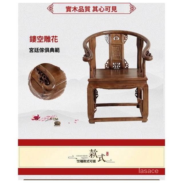 免運仿古實木皇宮椅三件套複古新中式太師椅單人官帽椅捲書椅圈椅榆木
