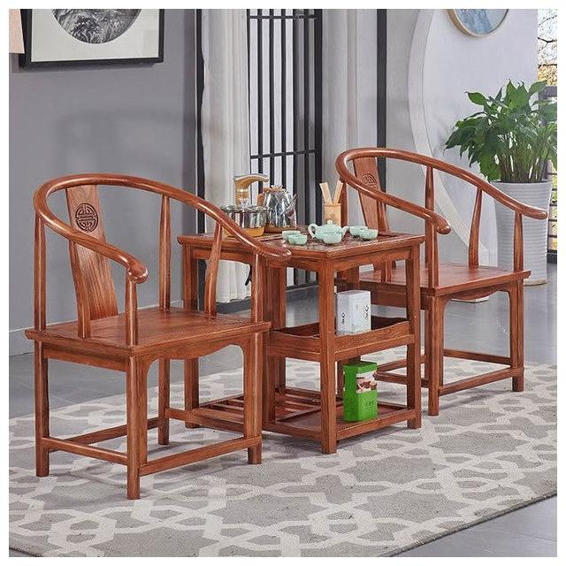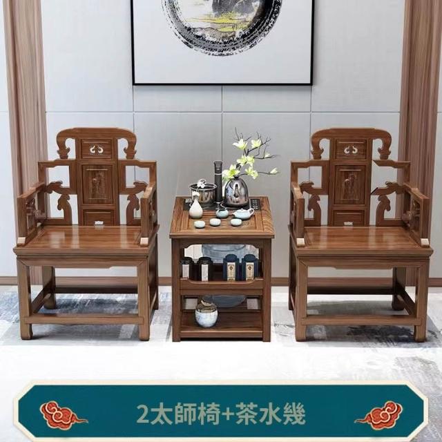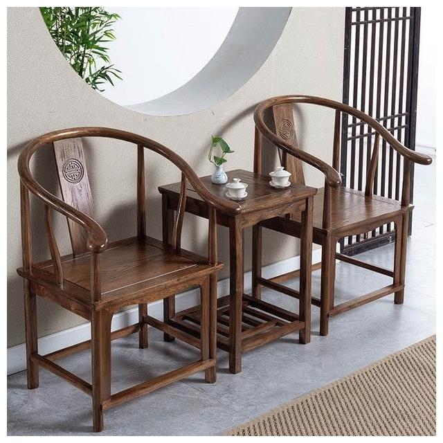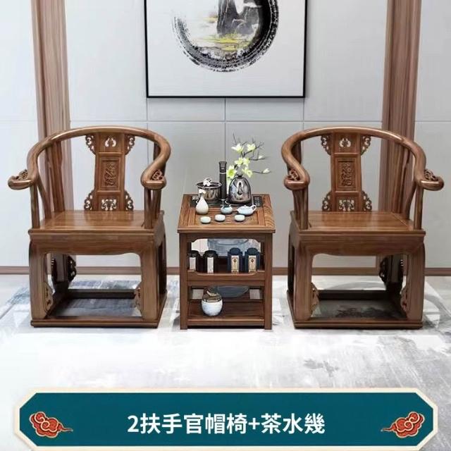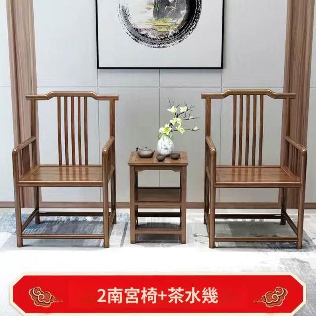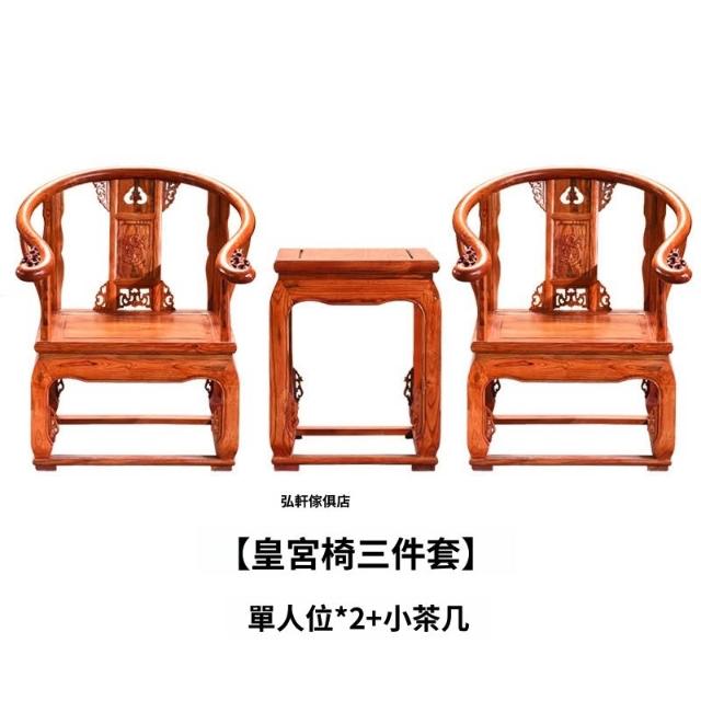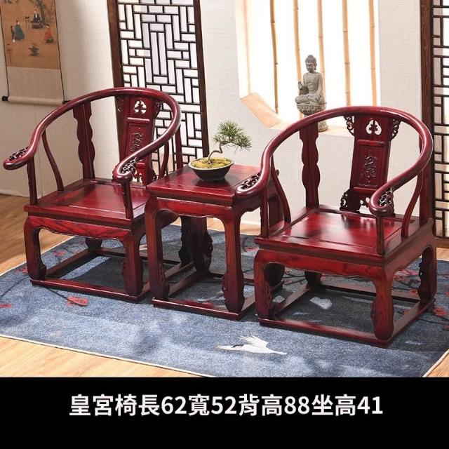 免運仿古實木皇宮椅三件套複古新中式太師椅單人官帽椅捲書椅圈椅榆木