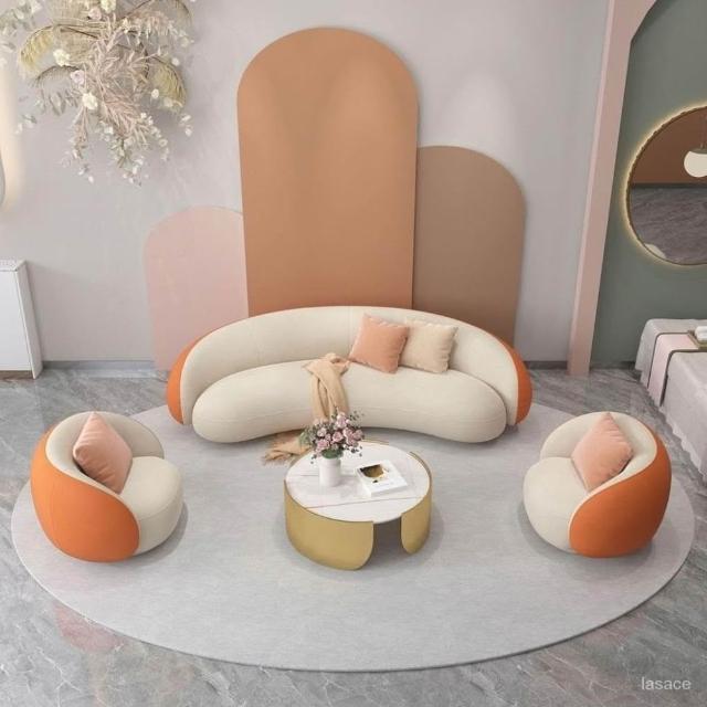 沙發組閤 腰果沙發 奶油風沙發 便宜沙發 三人沙發 北歐輕奢簡約現代風科技佈沙發 休息區接待小戶型客廳沙發理髮店雙人比特