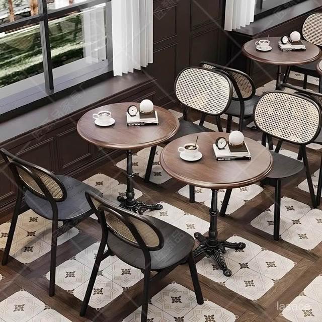 中古實木小圓桌子北歐客廳家用餐桌椅復古陽臺原木茶幾奶茶咖啡桌