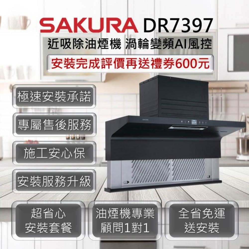 SAKURA 櫻花DR7397 近吸除油煙機- 渦輪變頻 AI風控系列 80cm、90cm