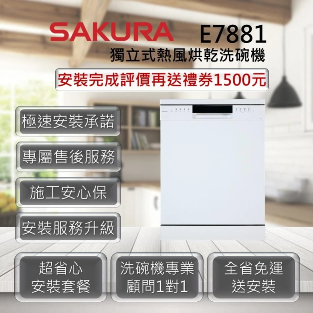 SAKURA 櫻花E7881 獨立式熱風烘乾洗碗機 16人份餐具套數