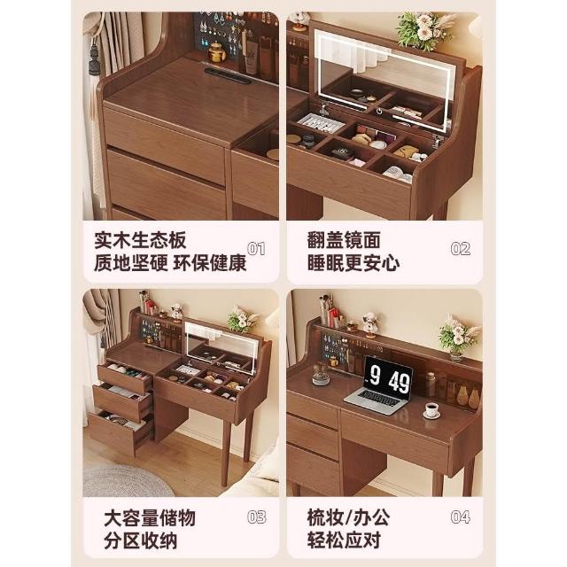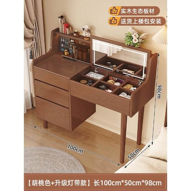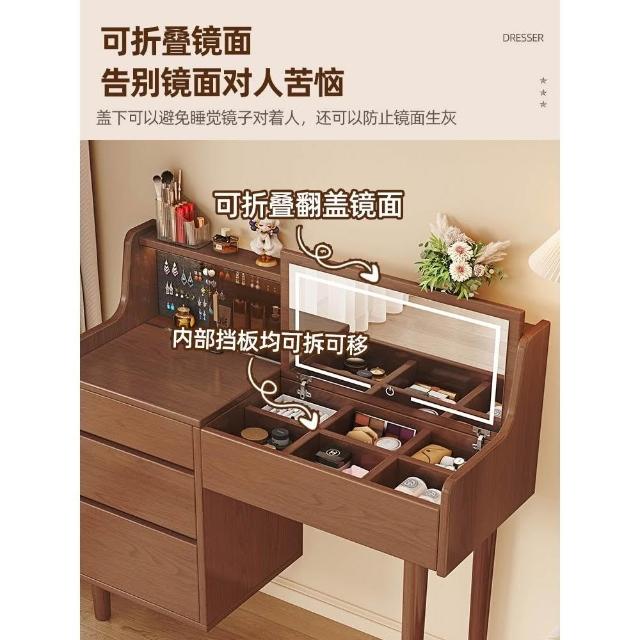 熱賣🔥全實木梳妝臺化妝桌現代臥室簡約翻蓋梳妝桌化妝臺收納櫃一體書桌