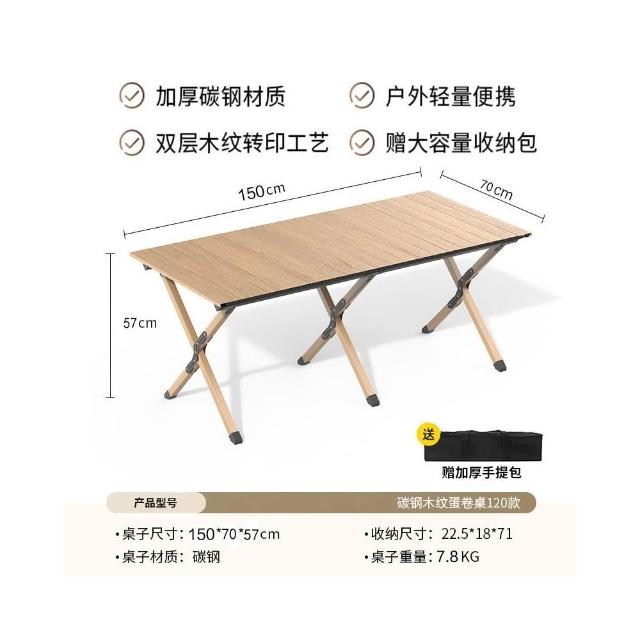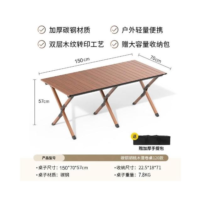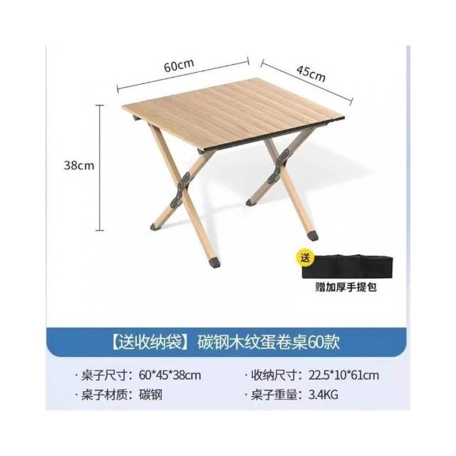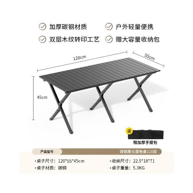熱賣🔥免運戶外折疊桌碳鋼合金蛋卷桌便捷式整套露營野餐擺攤裝備用品桌椅子