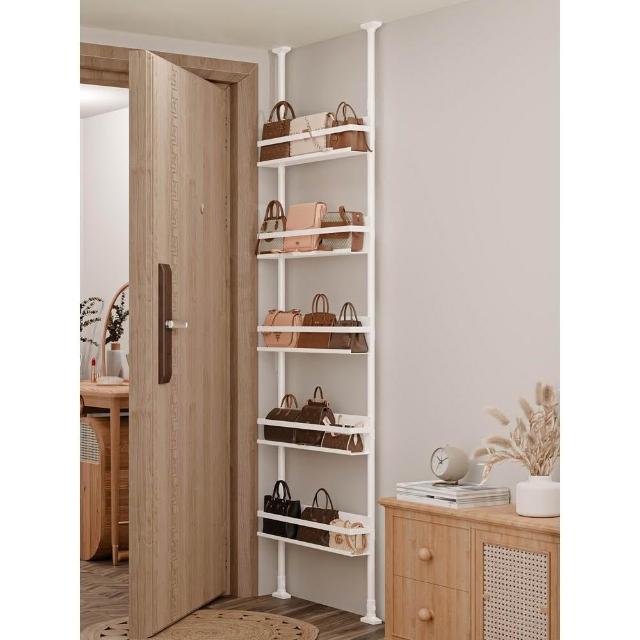 熱賣🔥免運包包收納神器門後掛放包包的置物架頂天立地家用多層入戶書包存放