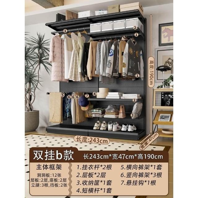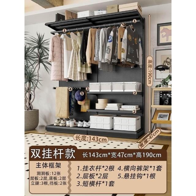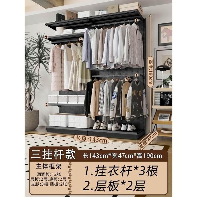 質量保證❤️開放式衣櫃臥室洞洞板五金收納衣架簡易少女衣帽間落地金屬置物架