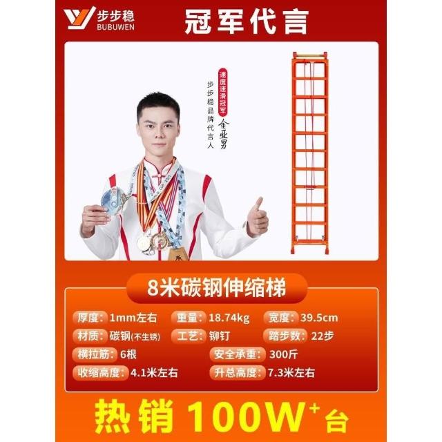 免運❤️鋁合金伸縮梯子 家用升降梯 工程專用直梯 加厚折疊爬梯長全鋁樓梯米