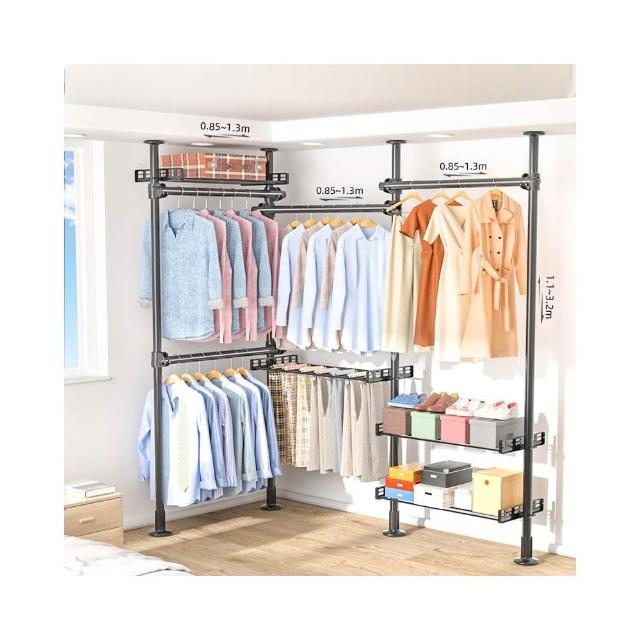 熱賣🔥免運組合衣架金屬臥室鋼管租房簡易衣櫃掛衣杆置衣架掛衣架