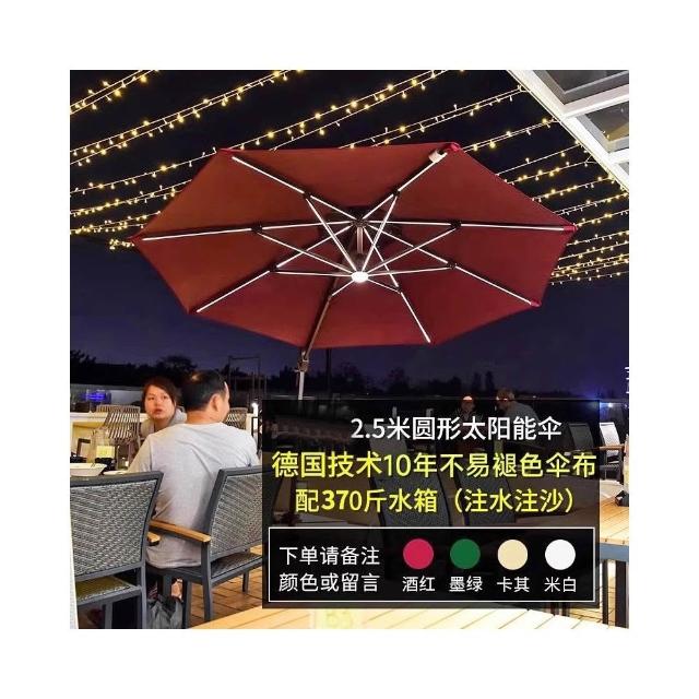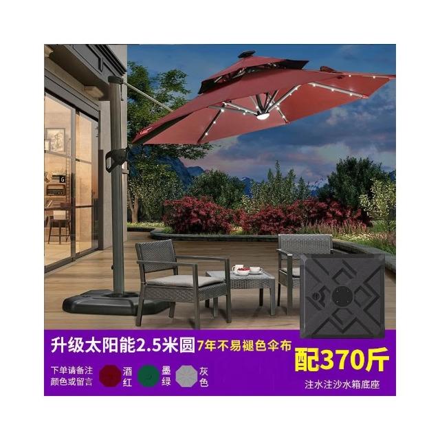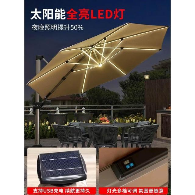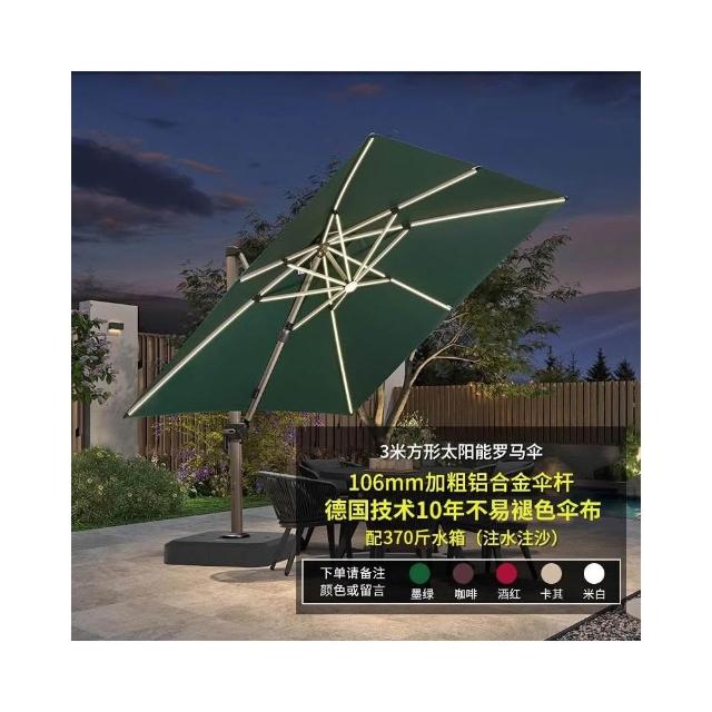 熱賣🔥免運戶外遮陽傘花園庭院傘露臺羅馬傘院子戶外傘太陽能LED帶燈太陽傘