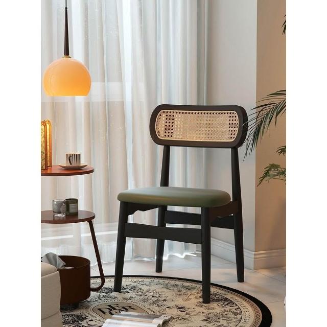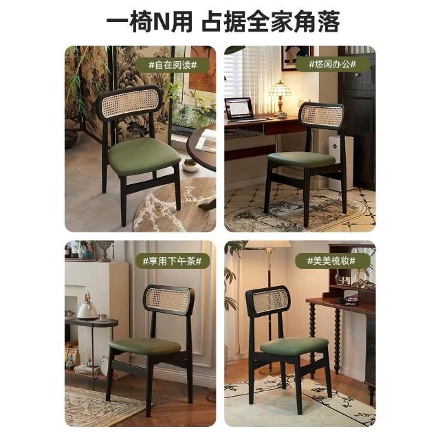 免運❤️實木餐桌椅靠背復古藤編法式餐椅中古休閒家用椅子高級感綠色凳子