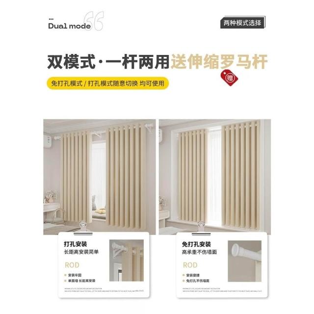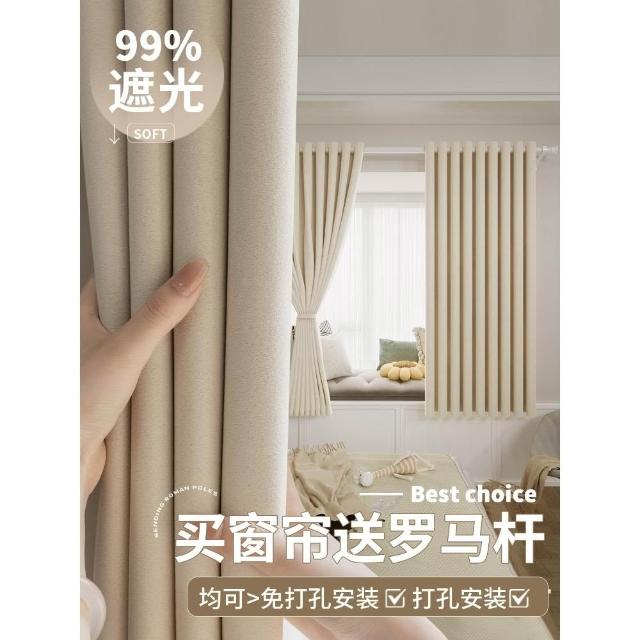 免運❤️全遮光窗簾2025新款一整套羅馬杆免打孔臥室安裝小窗戶輕奢加厚布