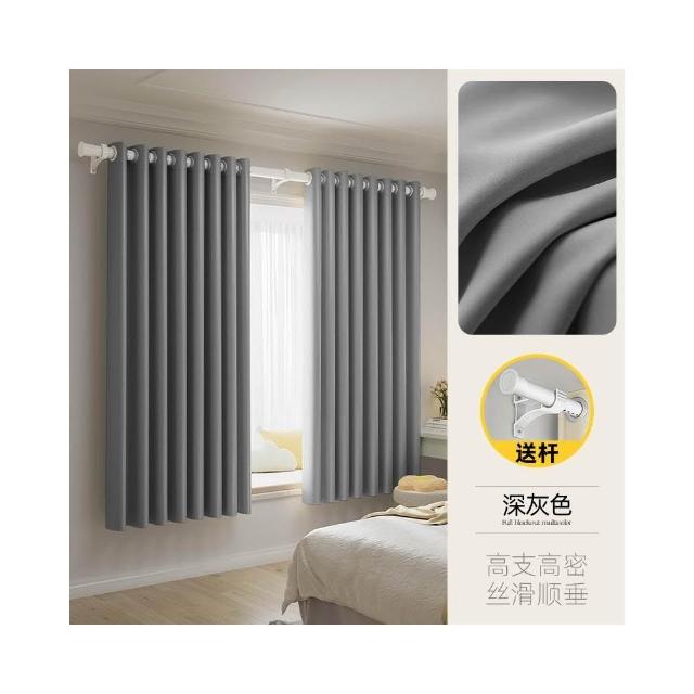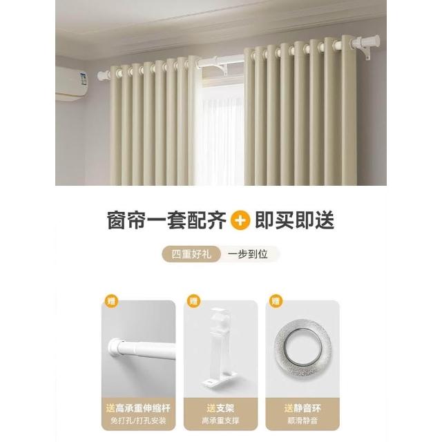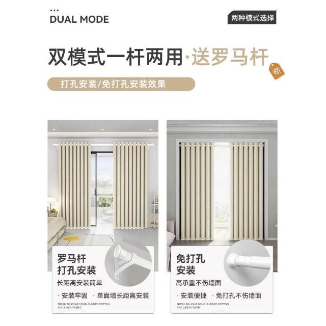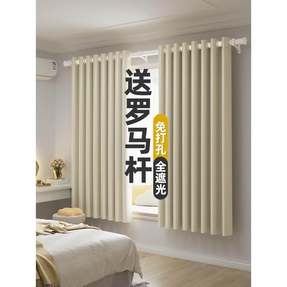 免運❤️臥室窗簾免打孔安裝帶杆一整套羅馬杆客廳飄窗全遮2025新款遮陽