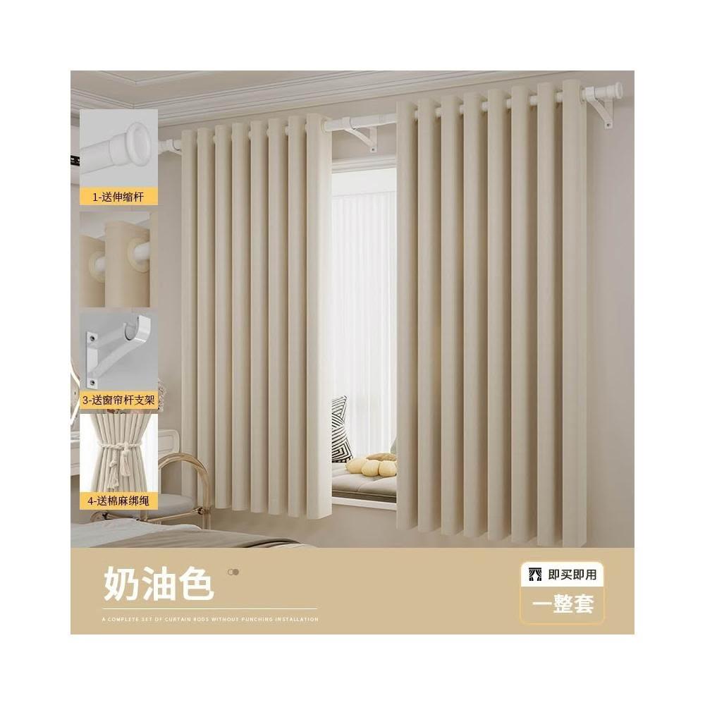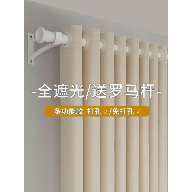 免運❤️全遮光窗簾帶杆一整套2025新款免打孔伸縮羅馬杆安裝防曬遮陽布厚