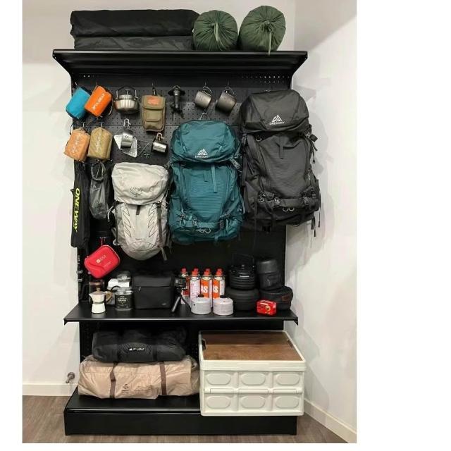 免運❤️洞洞板戶外徒步裝備牆貨架 展示落地爬山登山收納置物架免釘安裝(多功能戶外徒步裝備洞洞闆 分類式戶外裝備收納牆)