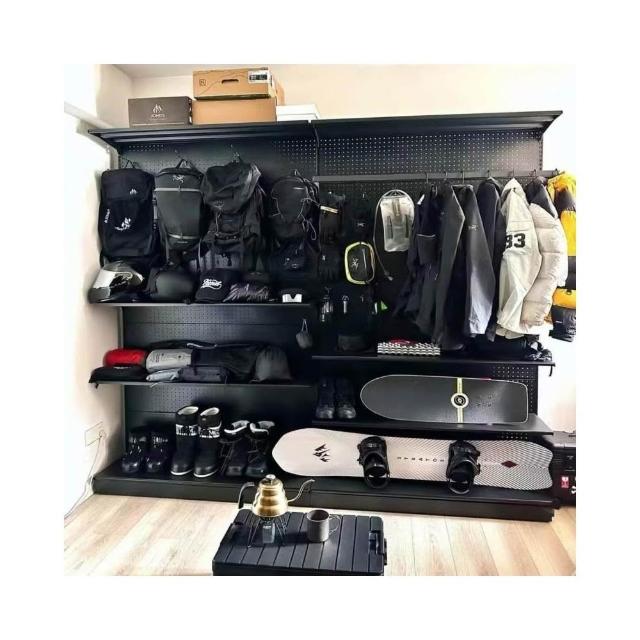免運❤️洞洞板戶外徒步裝備牆貨架 展示落地爬山登山收納置物架免釘安裝(多功能戶外徒步裝備洞洞闆 分類式戶外裝備收納牆)
