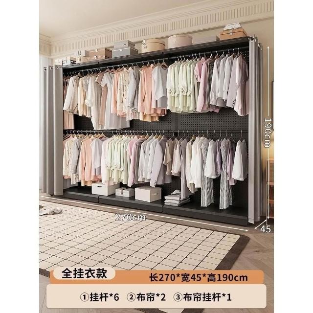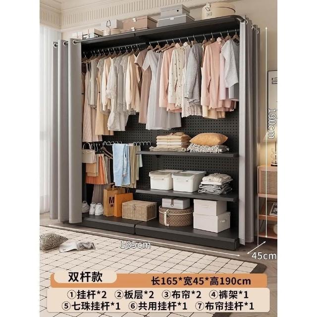 免運❤️洞洞板簡易衣櫃 臥室家用組裝金屬衣櫥 開放式防塵簾掛衣架(易組裝,免工具,模塊化,可拆卸,便攜,組裝便捷)